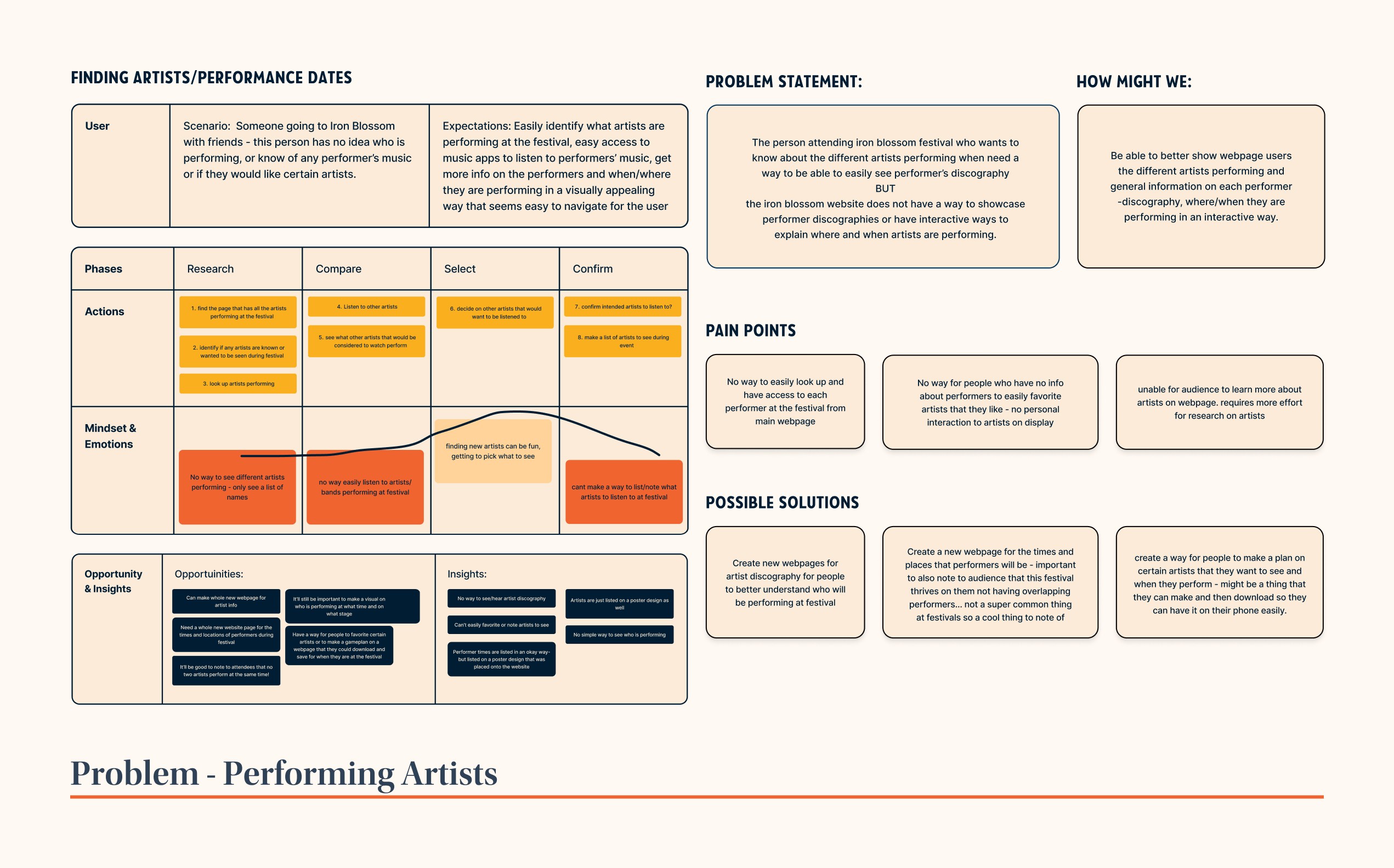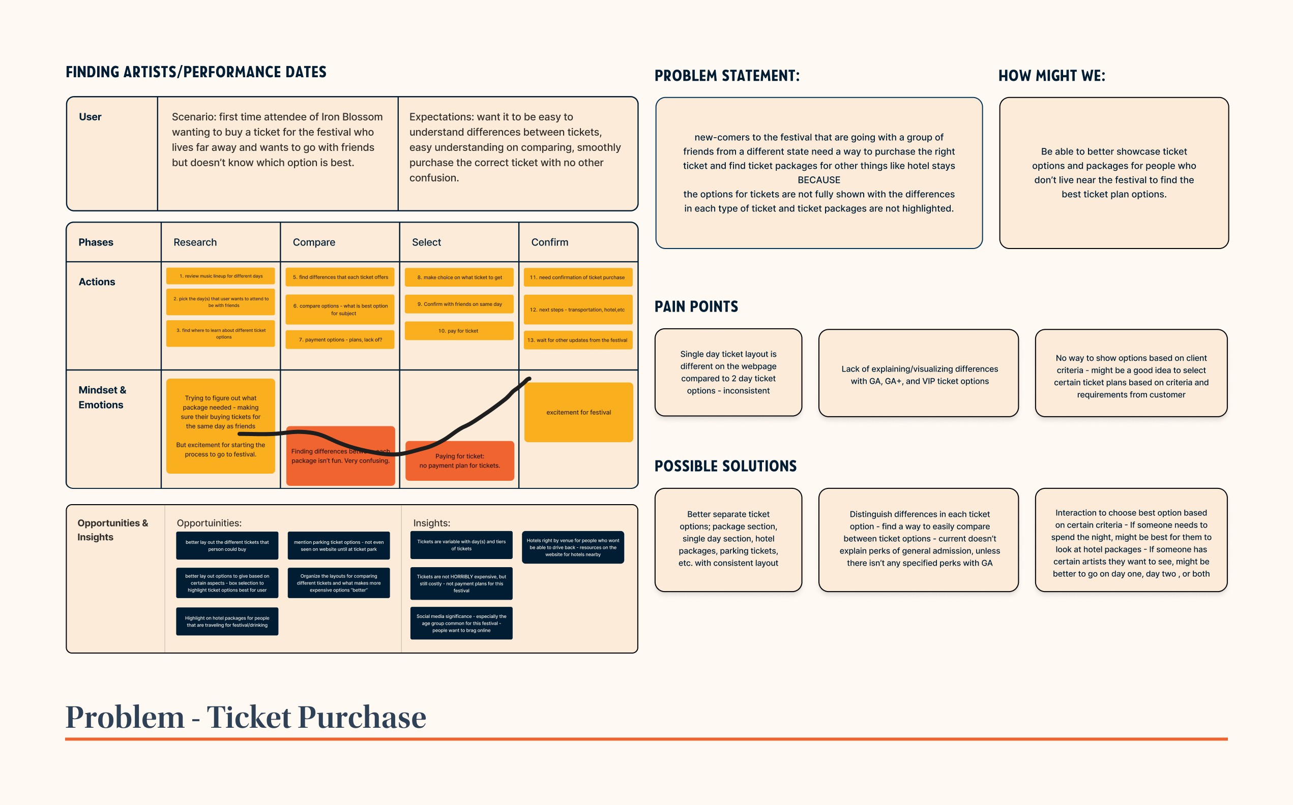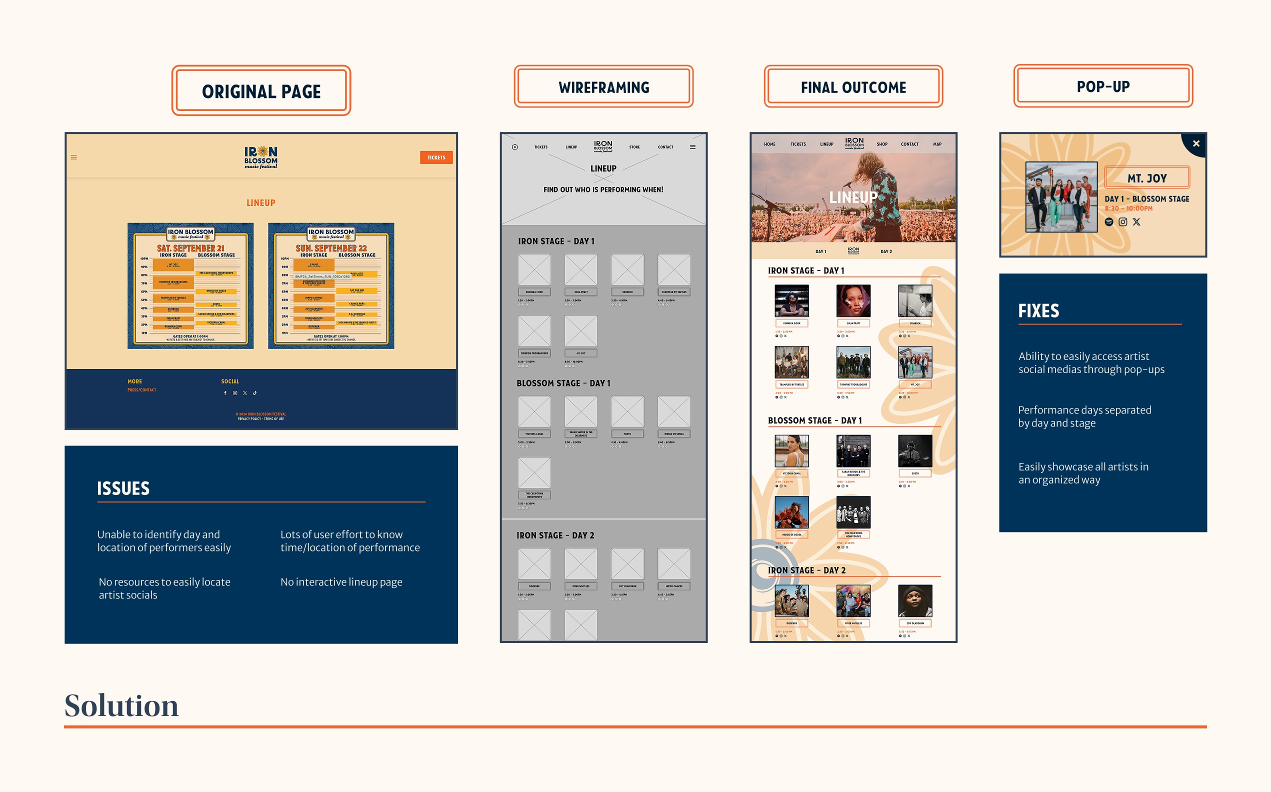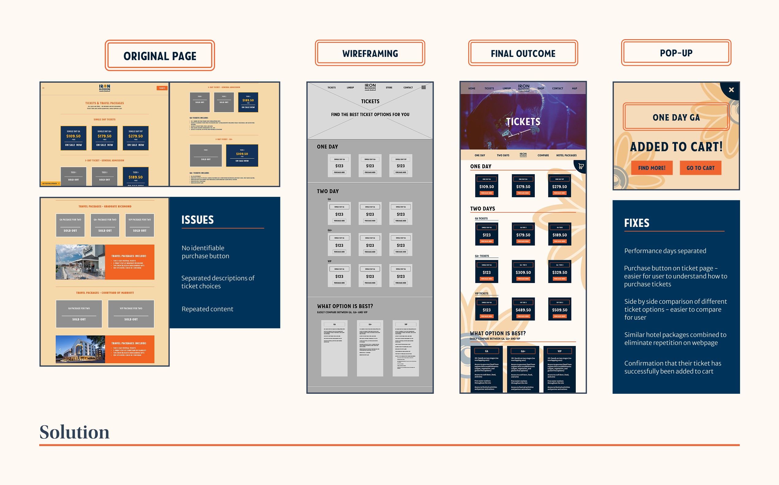 Solution: Changes made to their website would make ticket purchasing, lineups, and festival maps easier to understand, as well as easily finding times and days of performers!